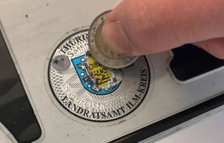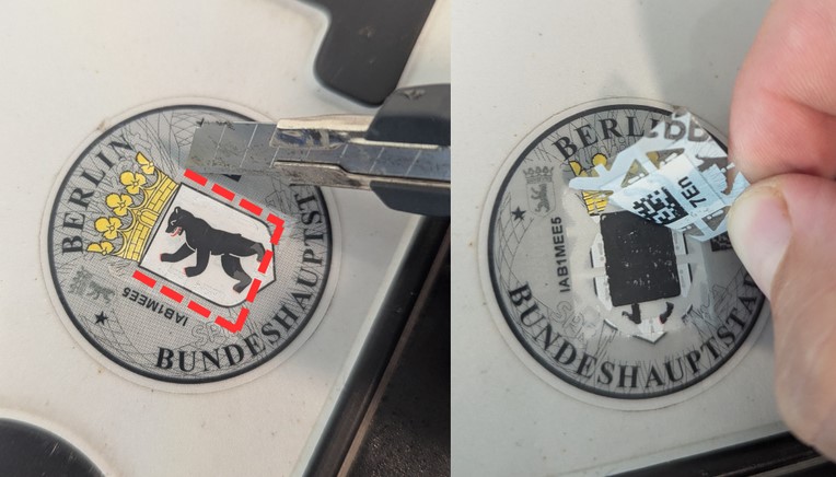 Der Code befindet sich hinter der Folie des runden Zulassungs-Stickers auf dem jeweiligen Kennzeichen.